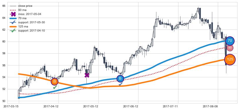 上涨趋势2017-03-15-2017-08-14,均线125, 70确认关键支撑2处