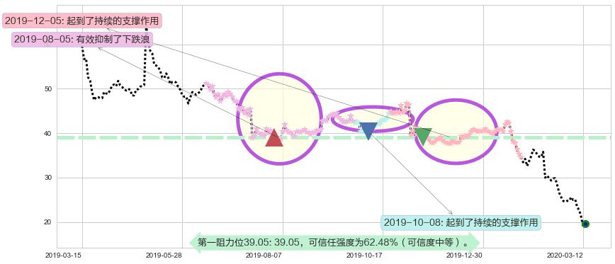 ♘ 在最后的下跌阶段2019-05-01至2020-03-13,存在 持续未破位的阻力位 ,阻力价格37.70,可信任强度72.58%,其距离最后价格19.54相差 +92.94%