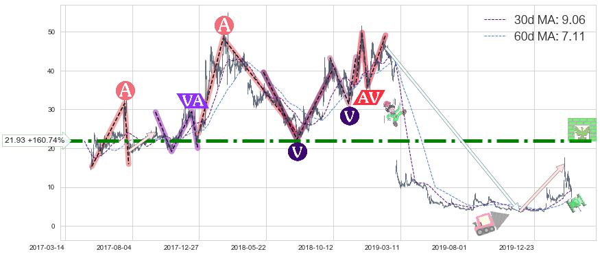 ♘ 阻力价格位21.93,可信任强度94.40%,距离最后交易2020-03-13形成的收盘价格8.41相差 +160.74%