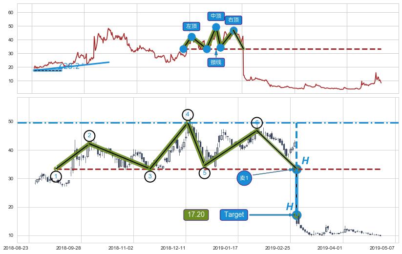 ➣ 【已确认突破】三重顶 起点:2018-08-20,突破点:2019-02-28,形态共132交易日