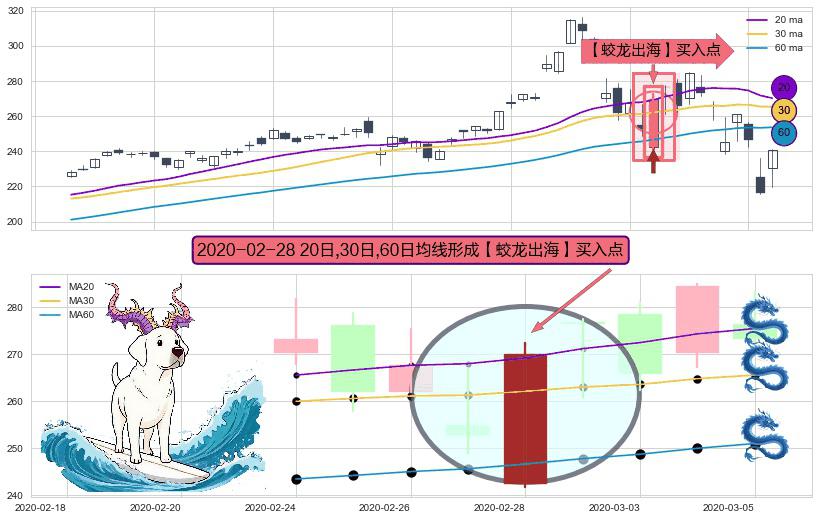 形态多维评估: ⚀ 2020-02-28日显现 20日-30日-60日均线 【蛟龙出海】买入点 看多信号,后市看涨,买入