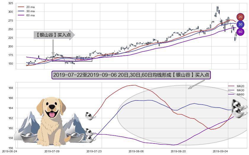 形态多维评估: ⚀ 2019-07-23-日至2019-09-06-日显现 20日-30日-60日均线 【银山谷】买入点 看多信号,后市看涨,买入