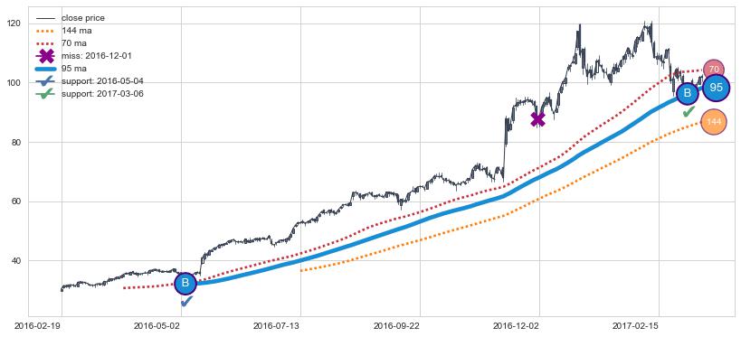 上涨趋势2016-02-19-2017-03-14,均线95确认关键支撑2处