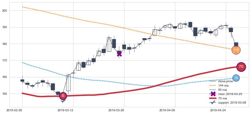 上涨趋势2019-02-26-2019-04-26,均线70确认关键支撑1处