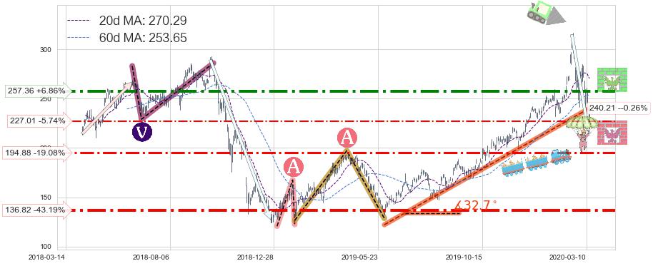 ♘ 支撑价格位227.01,可信任强度39.01%,距离最后交易2020-03-13形成的收盘价格240.84相差 -5.74%