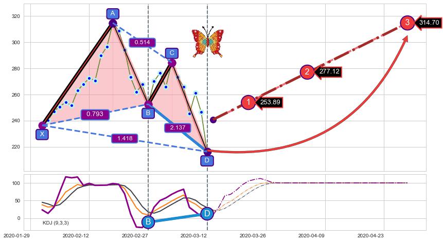 ➣ 已完成【蝴蝶】形态起点X: 2020-01-31, 终点D: 2020-03-12, 共29交易日