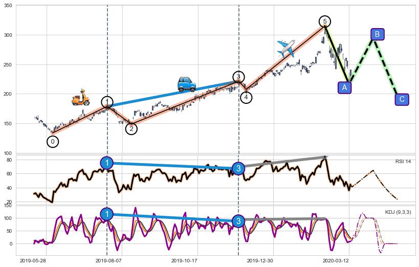 ➣ 第三,五驱动浪动能呈现递进增强,走势出现【中继】,中继程度较大