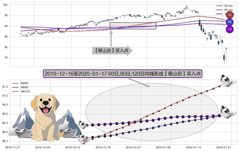 形态多维评估: ⚀ 2019-12-17-日至2020-01-17-日显现 60日-90日-120日均线 【银山谷】买入点 看多信号,后市看涨,买入