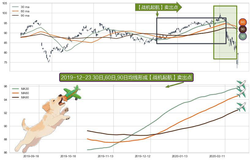 形态多维评估: ⚀ 2019-10-24日-2020-02-21日显现 30日-60日-90日均线 【战机起航】卖出点 看空信号,后市看跌,卖出