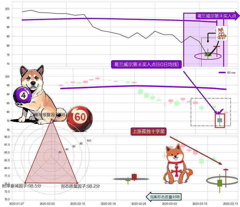 | 2 🅚:下跌抵抗 ➕ 🎢:葛兰威尔第⑥卖出点卖出点信号形成后,猜想后续上涨趋势反转下跌趋势(均值回复) ☞ 看空信号 ⇥ 【均线】交织【🅚线】⇥ 综合量化分数: 40 | > |