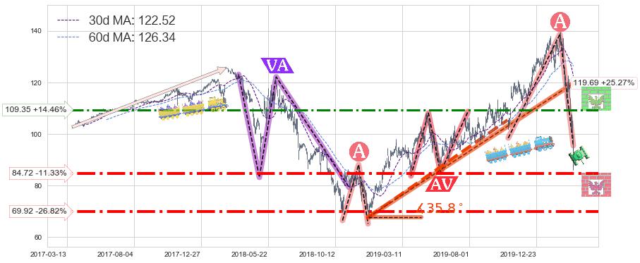 ♘ 阻力价格位109.35,可信任强度62.54%,距离最后交易2020-03-13形成的收盘价格95.54相差 +14.46%