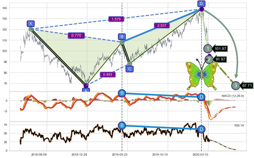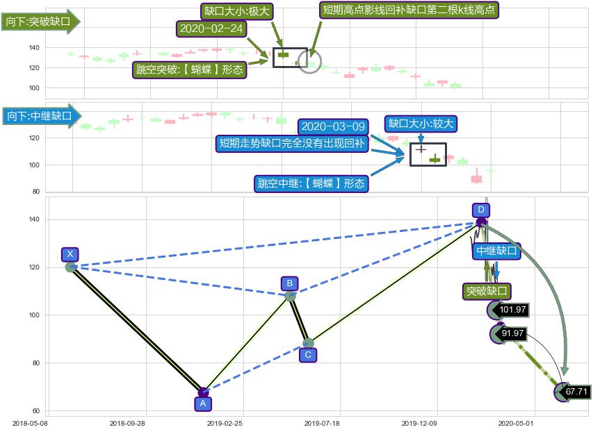 ➣ 已完成【蝴蝶】形态起点X: 2018-06-08, 终点D: 2020-02-13, 共424交易日