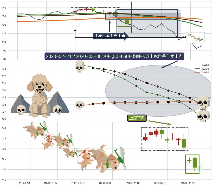 ➢ 高点影线(2020-02-05: 136.84 )→再次回踩→第一根k线低点(2020-01-24: 134.55 )