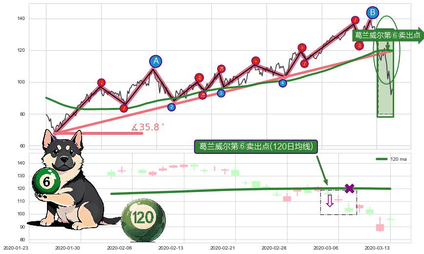 ✂️ 2018-12-24-2020-03-11上升趋势存在反转[风险],其原上升趋势的支撑位(119.69)已破位[强阻力信号],原上升趋势角度: 35.8˚