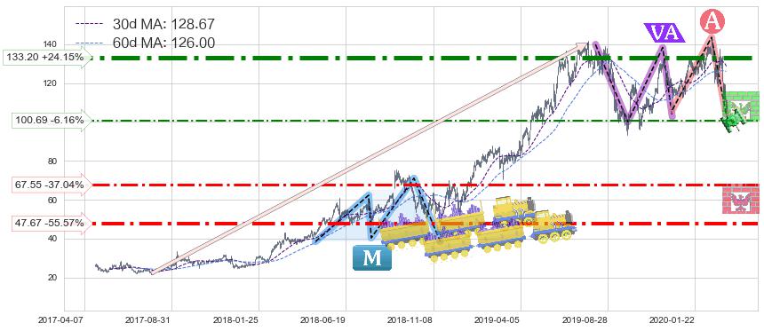 ♘ 阻力价格位100.69,可信任强度48.33%,距离最后交易2020-03-13形成的收盘价格107.29相差 -6.16%
