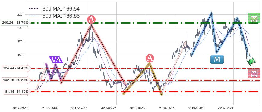 ♘ 阻力价格位209.24,可信任强度93.11%,距离最后交易2020-03-13形成的收盘价格145.52相差 +43.79%