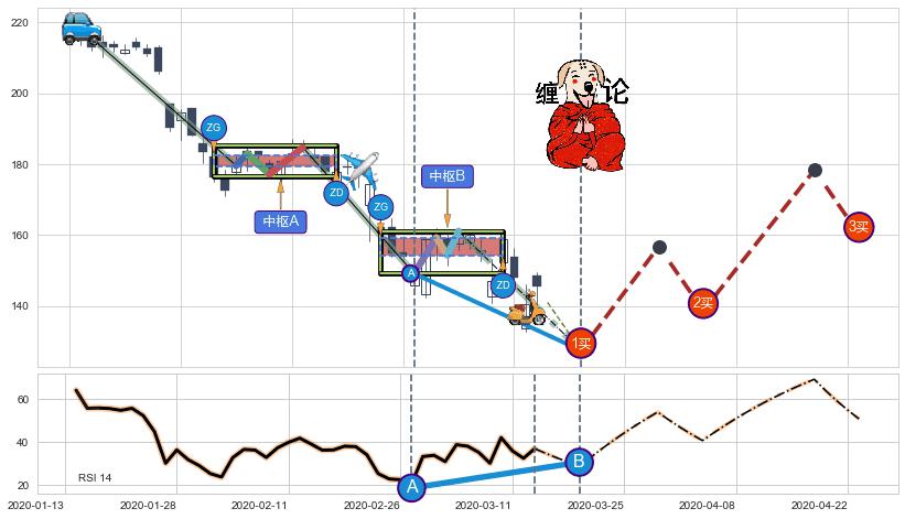 ➣ 【未完成】缠论 起点:2020-01-14, 完成第1中枢A,完成第2中枢B,到达2020-03-13