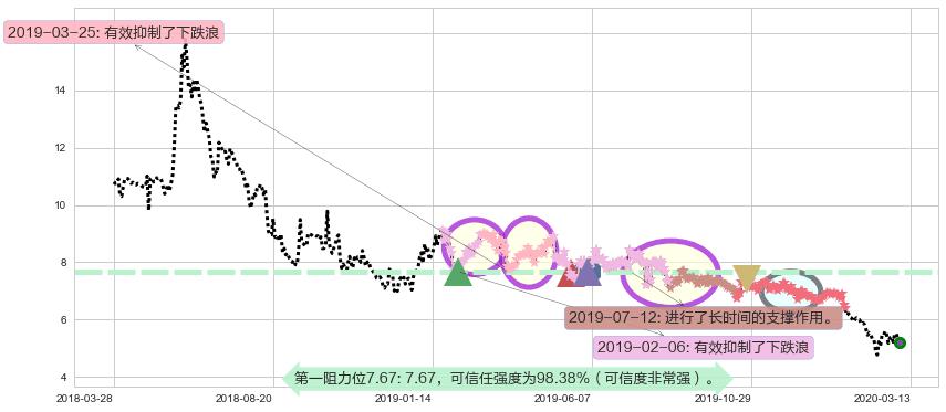 ♘ 阻力价格位7.67,可信任强度98.38%,距离最后交易2020-03-13形成的收盘价格5.19相差 +47.86%