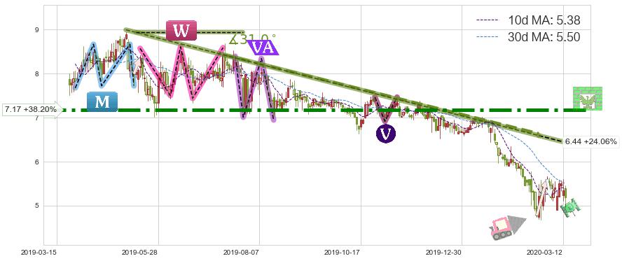 ♘ 阻力价格位7.17,可信任强度95.47%,距离最后交易2020-03-13形成的收盘价格5.19相差 +38.20%