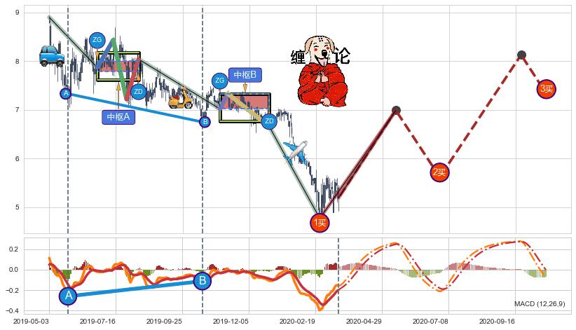 ➣ 【已完成】缠论 起点:2019-05-03,完成第1中枢A,完成第2中枢B,终点:2020-02-24,缠论共218交易日