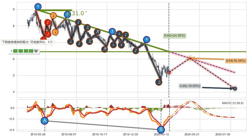 ➣ 预测:2020-08-11,【继续下探】稳定目前下跌趋势的前提下,预测价格:4.20