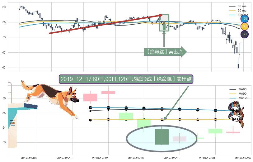 ⚀ 2019-12-17日显现 60日-90日-120日均线 【绝命跳】卖出点 看空信号,后市看跌,卖出
