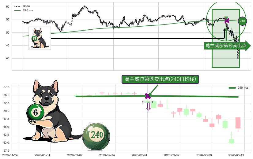 ⚀ 2020-02-24-日显现 葛兰威尔均线 240日均线 第⑥卖出点 走势反转见顶信号,后市看跌,卖出信号