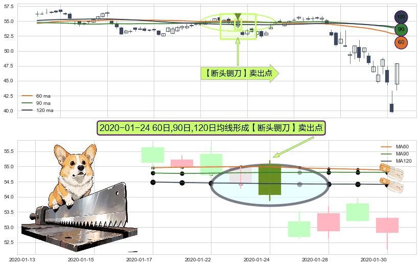 ⚀ 2020-01-24日显现 60日-90日-120日均线 【断头铡刀】卖出点 看空信号,后市看跌,卖出