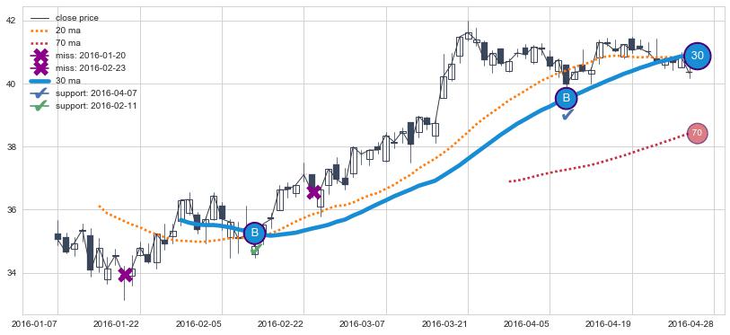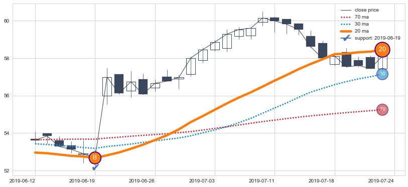 ⚃ 在破位点附近ma依然上升趋势比较明显,平稳迹象是在突破后一段时间后出现,信号【可信度低】