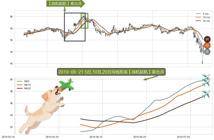 ⚀ 2019-06-03日-2019-07-12日显现 5日-10日-20日均线 【战机起航】卖出点 看空信号,后市看跌,卖出