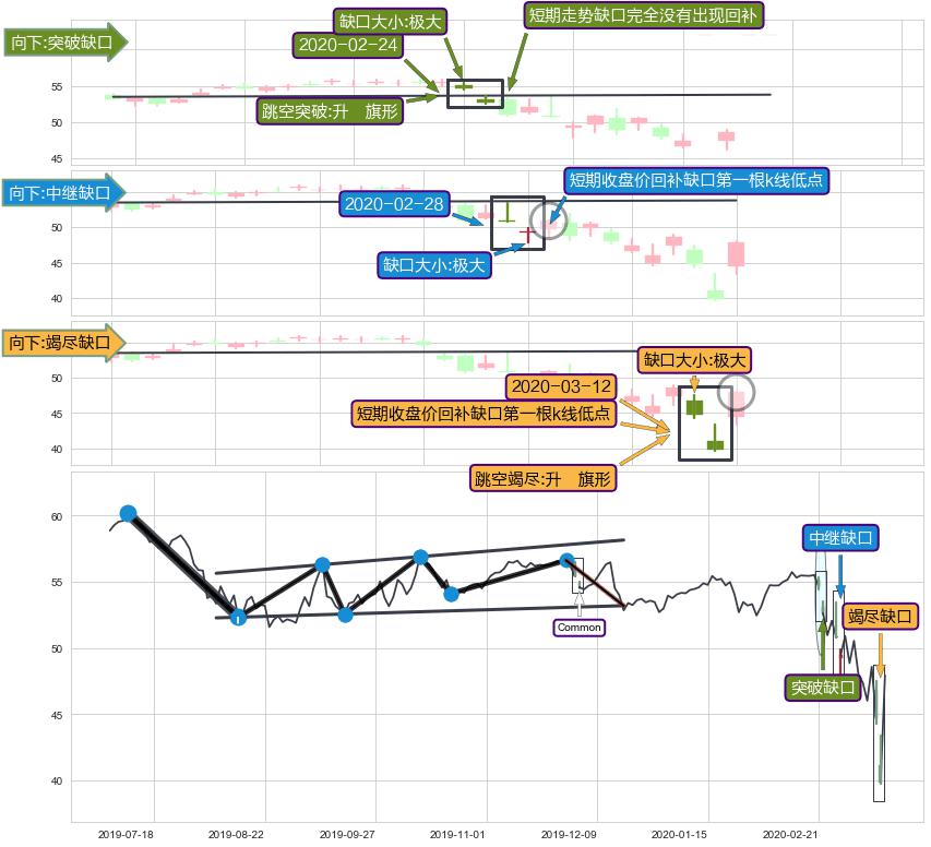 ➢ 2020-03-12形成:向下跳空【竭尽】缺口