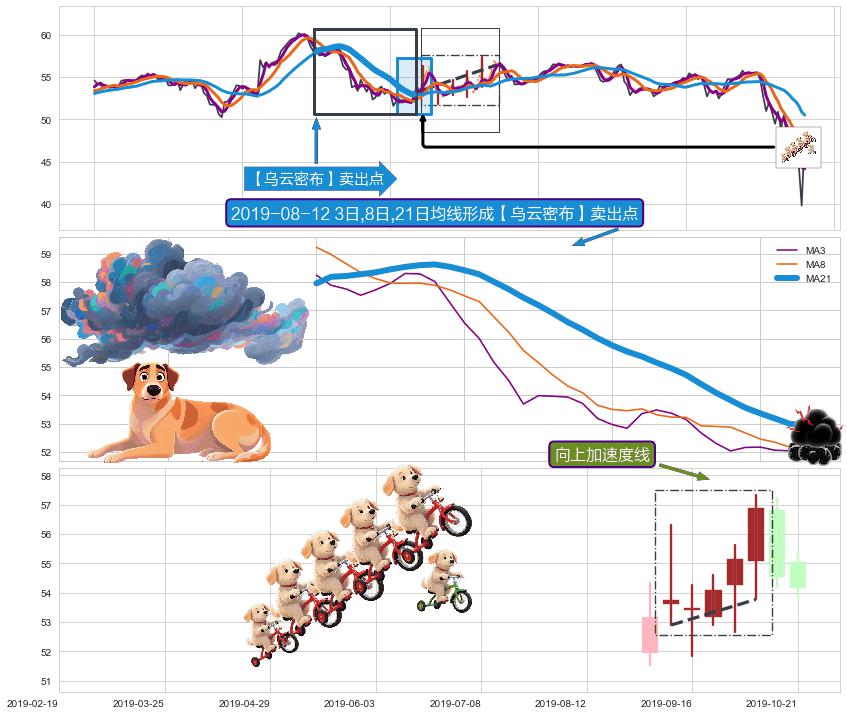 | 3 🅚:下跌螺旋桨 ➕ 🎢:【毒蜘蛛】卖出点均线组合卖出点信号形成后,猜想三条均线周期内的交易者都看空后市,持续下跌 ☞ 看空信号 ⇥ 【均线】交织【🅚线】⇥ 综合量化分数: 49 | > |