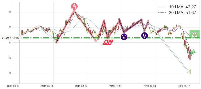 ♘ 阻力价格位51.50,可信任强度73.33%,距离最后交易2020-03-13形成的收盘价格47.93相差 +7.44%