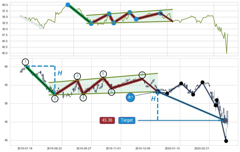 ➣ 最小中继整理跌幅→𝐇: 7.83 (𝐇旗杆的长度:旗杆起点→顶点)