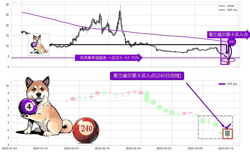 ⚀ 2020-03-13-日显现 葛兰威尔均线 240日均线 第④买入点 下降趋势均值回复的短线反弹信号,后市看涨,买进信号