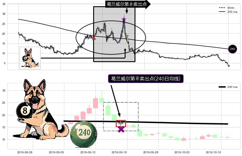 ⚀ 2019-09-18-日显现 葛兰威尔均线 240日均线 第⑧卖出点 下降趋势的中继信号,后市看跌,卖出信号