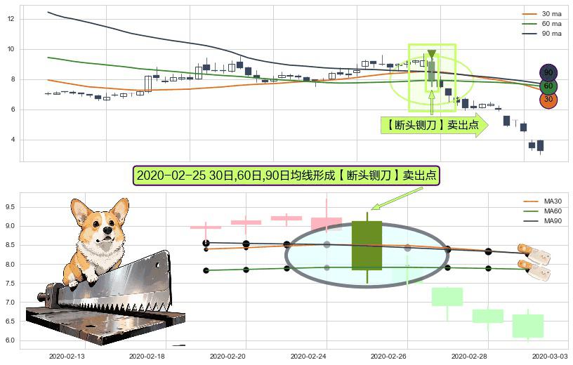 ⚀ 2020-02-25日显现 30日-60日-90日均线 【断头铡刀】卖出点 看空信号,后市看跌,卖出