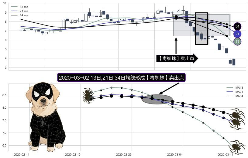⚀ 2020-03-02日显现 13日-21日-34日均线 【毒蜘蛛】卖出点 看空信号,后市看跌,卖出