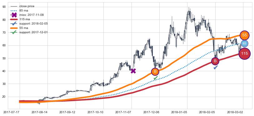 2017-07-18至2018-03-02 慢线与快线呈多头排列, 慢线与快线接触少,无缠绕