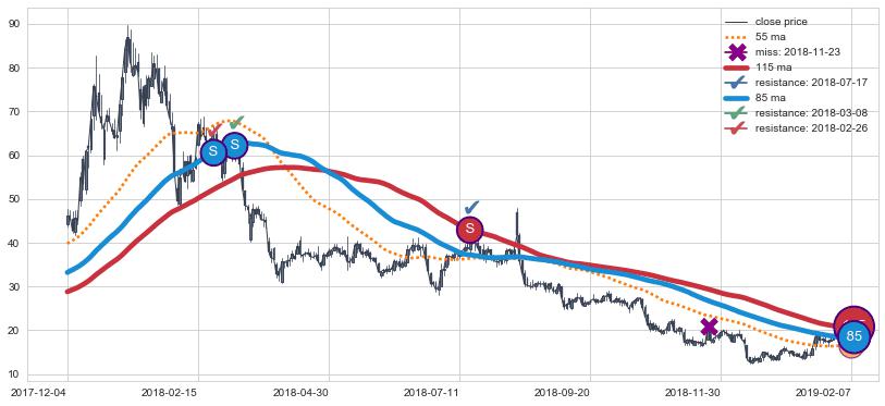 ⚂ 2019-07-24-日均线向上突破,2019-09-18-日重新下穿均线破位,均线阻力再次生效