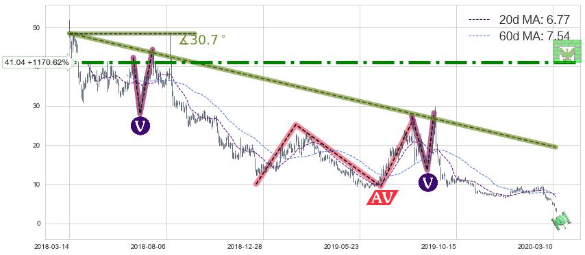 ♘ 阻力价格位41.04,可信任强度94.22%,距离最后交易2020-03-13形成的收盘价格3.230相差 +1170.62%