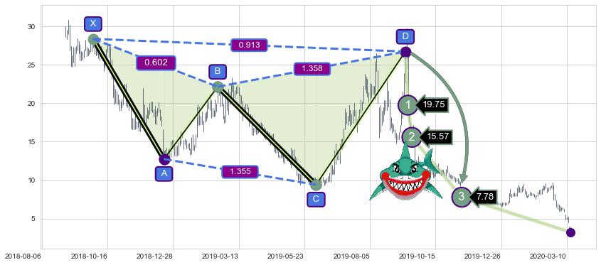 ➣ 已达成看跌【鲨鱼】形态全部的预期目标