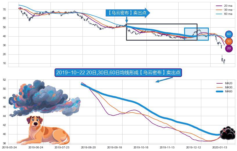 形态多维评估: ⚀ 2019-08-05日-2020-01-09日显现 20日-30日-60日均线 【乌云密布】卖出点 看空信号,后市看跌,卖出