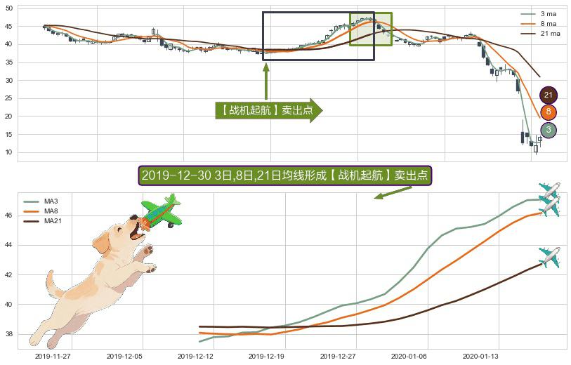 形态多维评估: ⚀ 2019-12-11日-2020-01-16日显现 3日-8日-21日均线 【战机起航】卖出点 看空信号,后市看跌,卖出