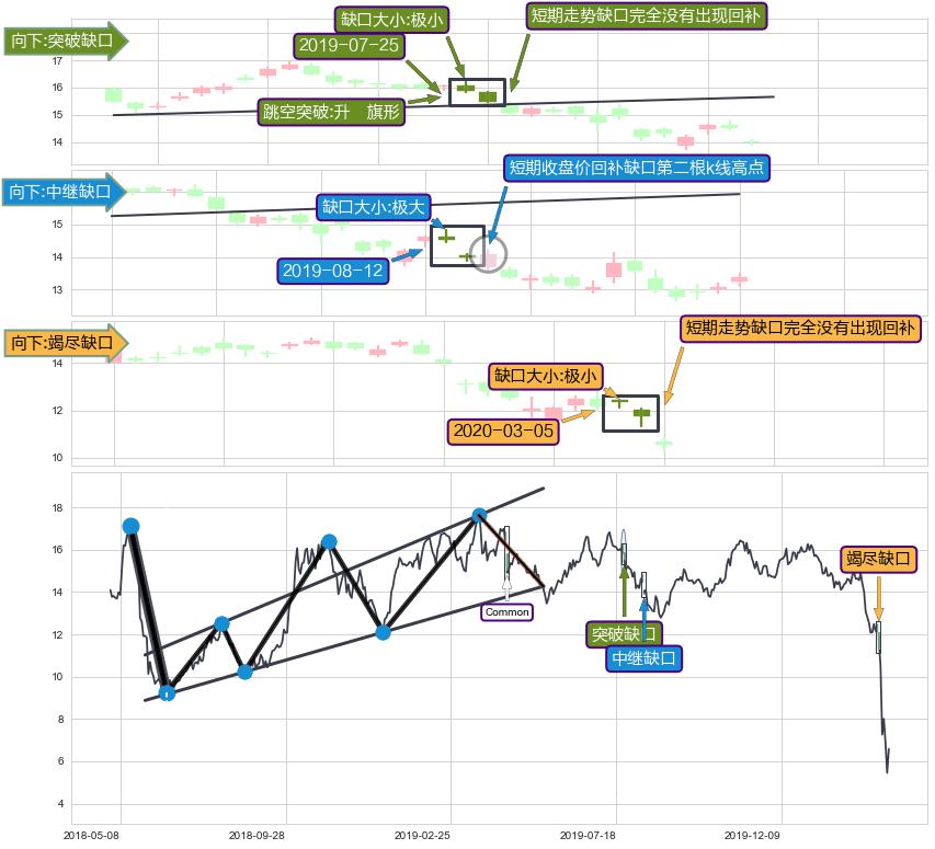 ➣ 中继缺口在突破缺口后再次向下跳空,趋势得到加固