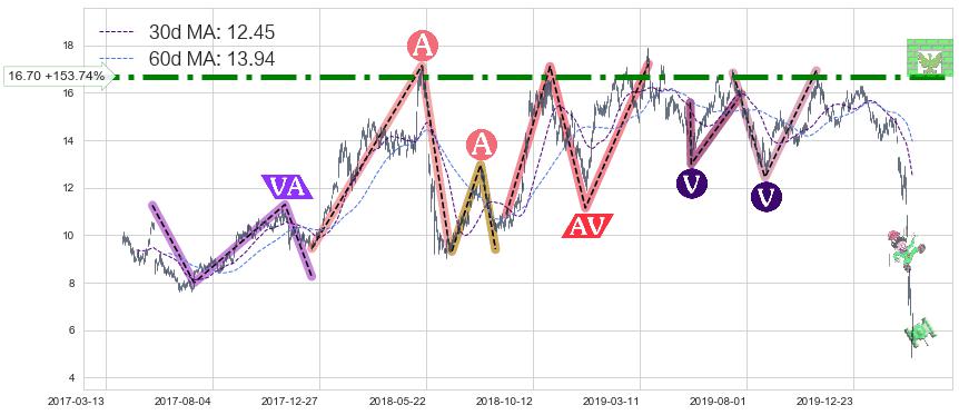 ♘ 阻力价格位16.70,可信任强度99.00%,距离最后交易2020-03-13形成的收盘价格6.58相差 +153.74%