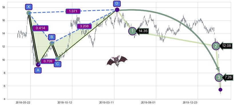 ➣ 已完成【蝙蝠】形态起点X: 2018-05-16, 终点D: 2019-03-20, 共212交易日