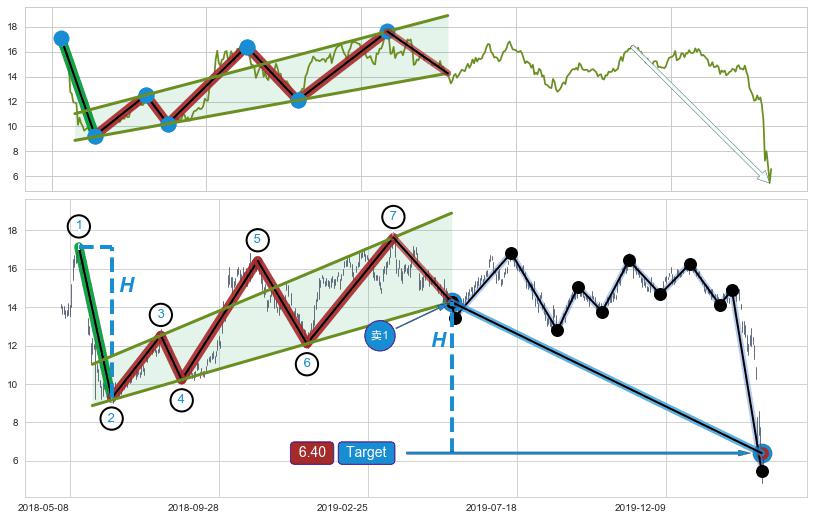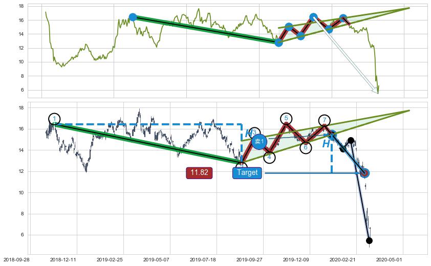 ➣ 最小中继整理跌幅→𝐇: 7.87 (𝐇旗杆的长度:旗杆起点→顶点)