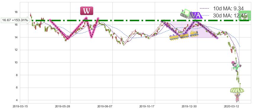 ♘ 阻力价格位16.67,可信任强度98.80%,距离最后交易2020-03-13形成的收盘价格6.58相差 +153.31%