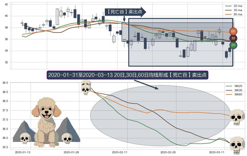 形态多维评估: ⚀ 2020-02-03-日至2020-03-13-日显现 20日-30日-60日均线 【死亡谷】卖出点 看空信号,后市看跌,卖出